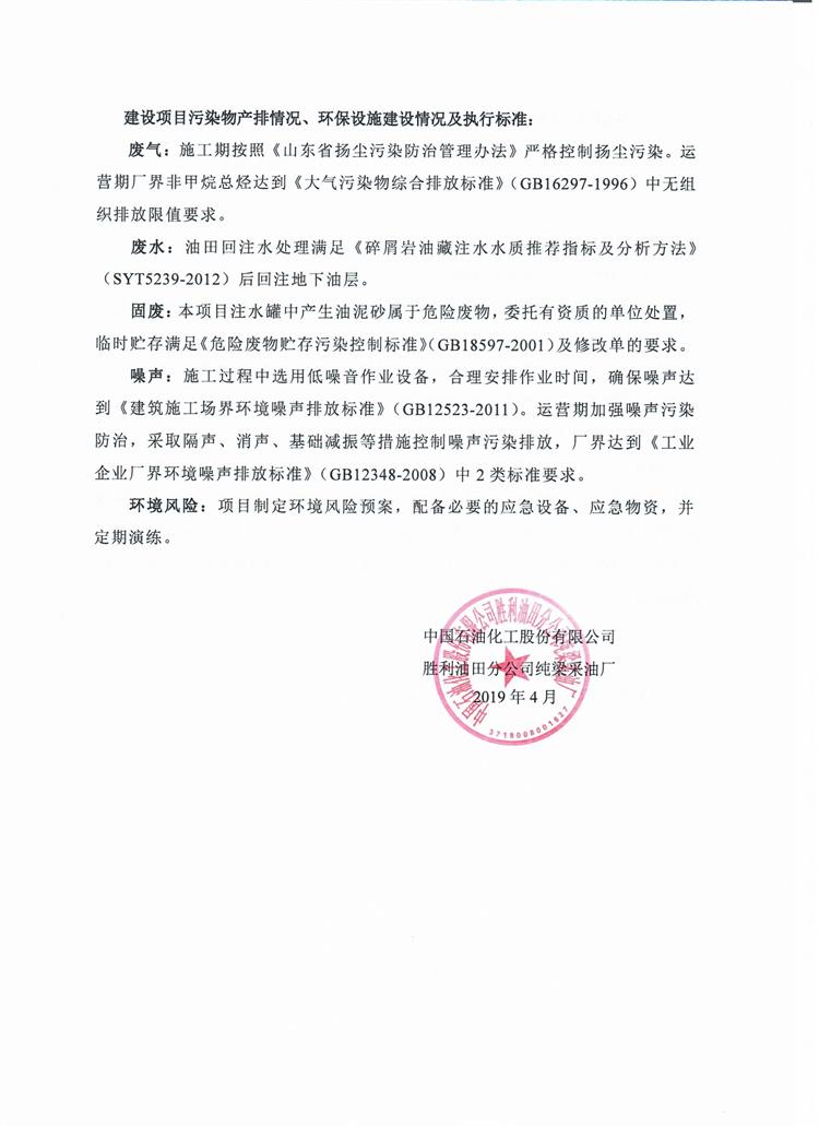 中國石油化工股份有限公司勝利油田分公司純梁采油廠純五注精細水處理擴容改造工程竣工公示